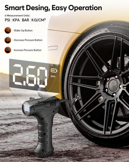 Air Pump 2.0 – 150 PSI Cordless Tire Inflator with Auto Shut-Off & LED Light - New 2025