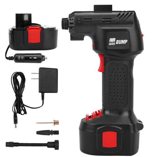 Air Pump 12V Cordless Portable Compressor for Car/Bike Tires/Inflatable with Li-Ion Battery & Cigarette Light Plug-in Cord